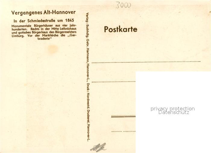 73690885 HANNOVER CITY Schmiedestrasse in Alt-Hannover postalisch nicht gelaufen Erhaltung siehe scans [WerneD78] Wern Katcode 11110003241001