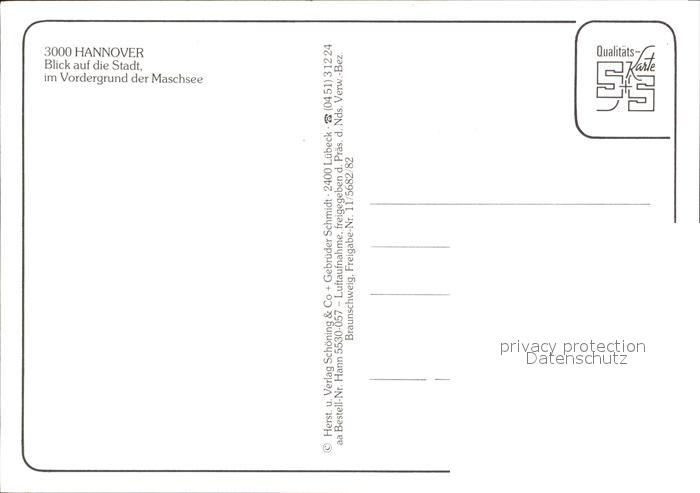 72465190 HANNOVER CITY Stadt mit Maschsee Fliegeraufnahme postalisch nicht gelaufen Erhaltung siehe scans KatCode: 11110003241001