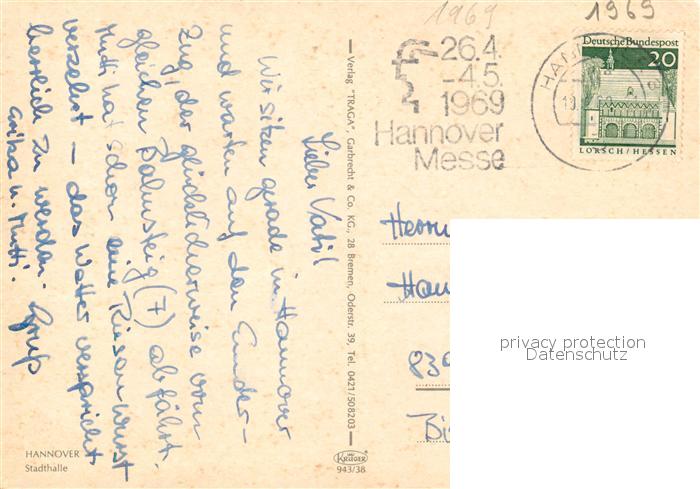 73054603 alte Postkarte HANNOVER CITY Stadthalle postalisch gelaufen Erhaltung siehe scans [KathaD81] KatCode: 11110003241001