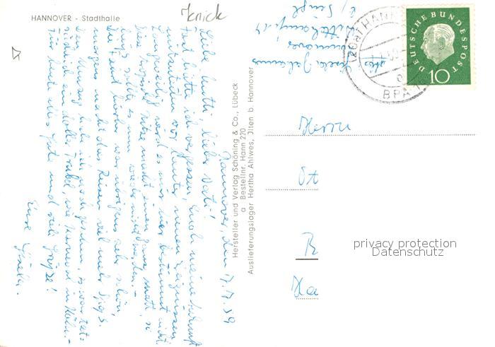 72941191 alte Postkarte HANNOVER CITY Stadthalle postalisch gelaufen Erhaltung siehe scans [NatalD47] KatCode: 11110003241001