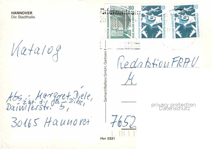 72751958 alte Postkarte HANNOVER CITY Stadthalle postalisch gelaufen Erhaltung siehe scans [KathaD81] KatCode: 11110003241001