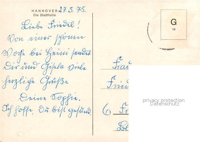 73123044 alte Postkarte HANNOVER CITY Stadthalle Park postalisch gelaufen Erhaltung siehe scans [KathaD81] KatCode: 11110003241001