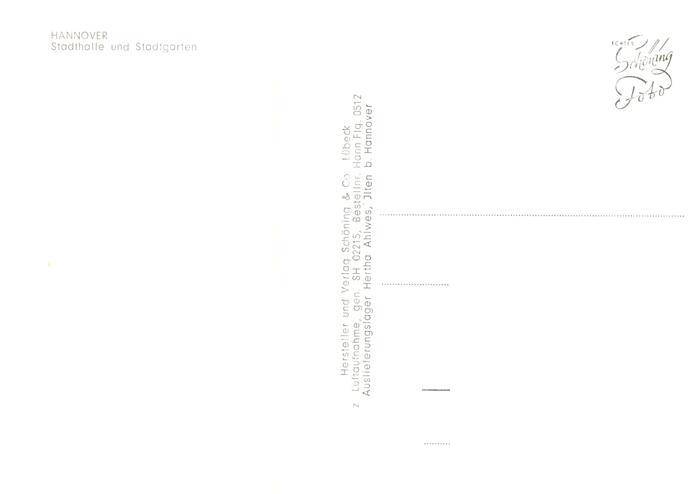 73925495 HANNOVER CITY Stadthalle und Stadtgarten postalisch nicht gelaufen Fliegeraufnahme Erhaltung siehe scans [FriedD77] Fliegeraufnahme Frie Katcode 11110003241001