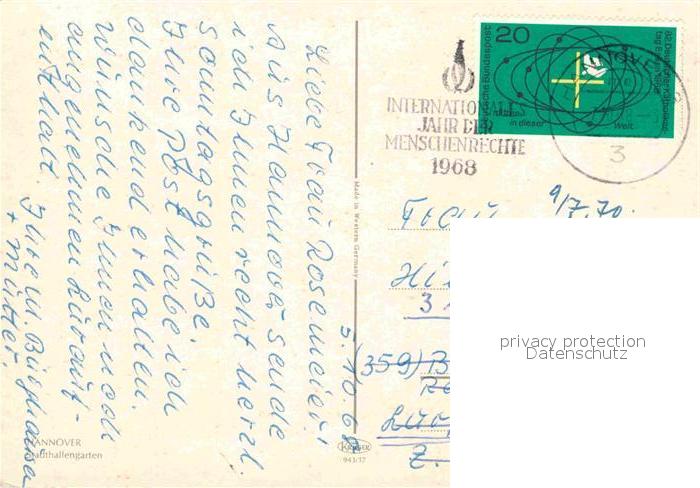 72908067 alte Postkarte HANNOVER CITY Stadthallengarten postalisch gelaufen Erhaltung siehe scans [NatalD47] KatCode: 11110003241001