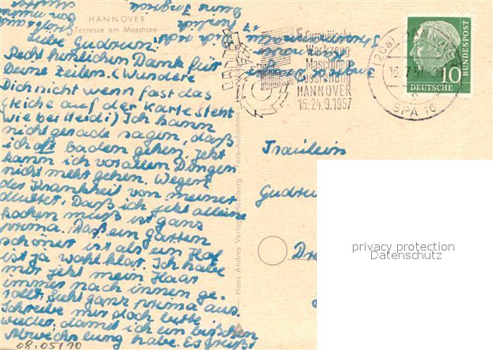 72908076 alte Postkarte HANNOVER CITY Terrasse Maschsee postalisch gelaufen Erhaltung siehe scans [NatalD47] KatCode: 11110003241001
