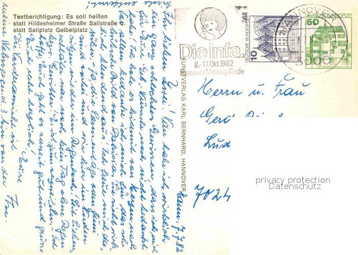 72756079 alte Postkarte HANNOVER CITY Tiefenriede Sallplatz Marienstrasse Henriettenstift postalisch gelaufen Erhaltung siehe scans [NatalD47] KatCode: 11110003241001
