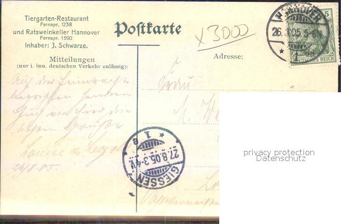 42109231 alte Postkarte HANNOVER CITY Tiergarten Restaurant und Ratsweinkeller postalisch gelaufen Erhaltung siehe scans KatCode: 11110003241001