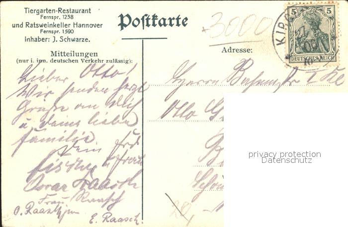 42171255 alte Postkarte HANNOVER CITY Tiergarten postalisch gelaufen Erhaltung siehe scans KatCode: 11110003241001