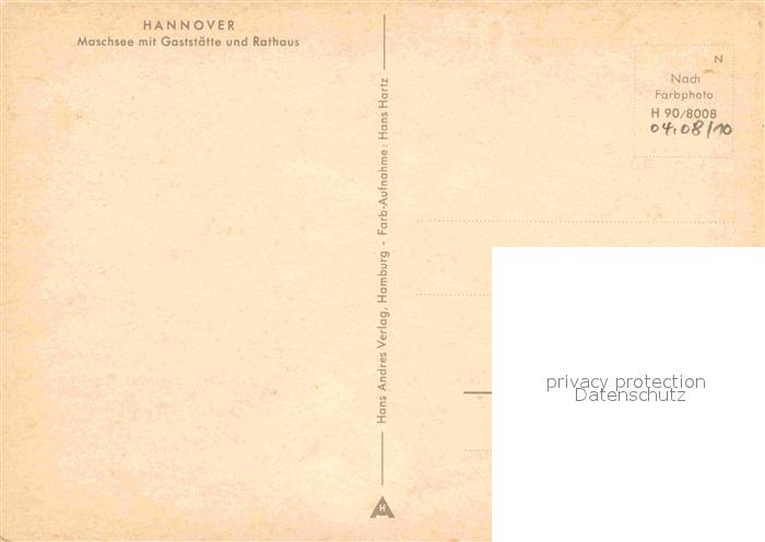 72912272 HANNOVER CITY Uferpartie am Maschsee Bootsanleger Gaststaette Rathaus postalisch nicht gelaufen Erhaltung siehe scans [FriedD77] KatCode: 11110003241001