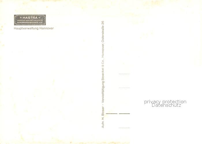 73324297 Hannover Hastra Stromversorgungs AG Hauptverwaltung Hochhaus postalisch nicht gelaufen Erhaltung siehe scans [FriedD77] KatCode: 11110003241001
