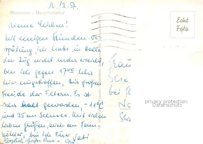 73282628 alte Postkarte Hannover Hauptbahnhof postalisch gelaufen Erhaltung siehe scans [NatalD47] KatCode: 11110003241001