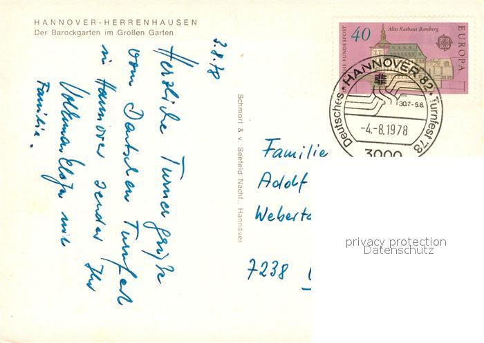 73296055 alte Postkarte Hannover Herrenhausen Barockgarten im Grossen-Garten postalisch gelaufen Erhaltung siehe scans [LiesaD40] KatCode: 11110003241001