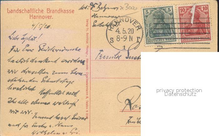 42173633 Hannover Landschaftliche Brandkasse postalisch nicht gelaufen Erhaltung siehe scans Alte Ansichtskarte Postkarte Matt Katcode 11110003241001