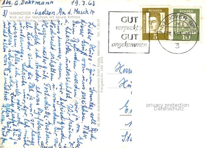 73541158 alte Postkarte Hannover Maschsee mit neuem Rathaus und Marktkirche Fliegeraufnahme postalisch gelaufen Erhaltung siehe scans [WerneD78] KatCode: 11110003241001
