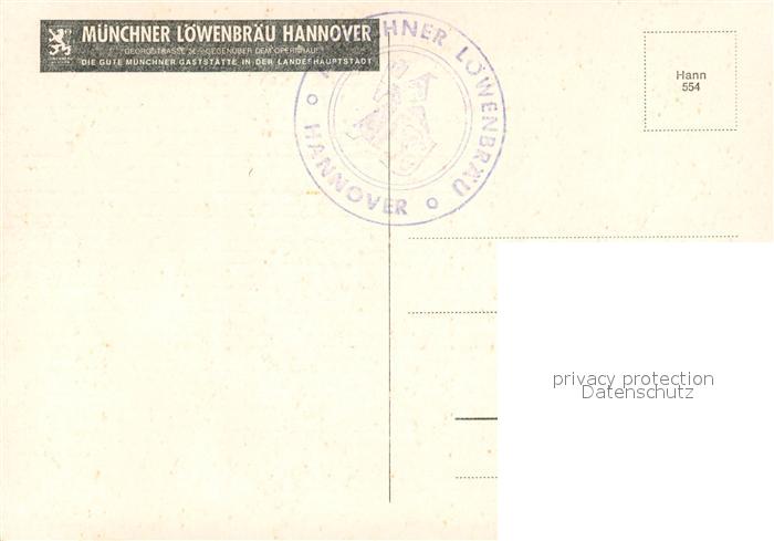 73615731 Hannover Muenchner Loewenbraeu Gaststube postalisch nicht gelaufen Erhaltung siehe scans [WerneD78] KatCode: 11110003241001