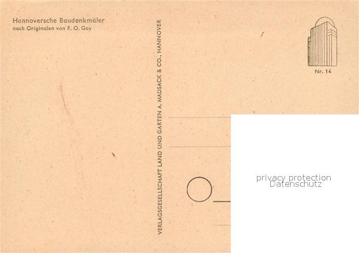 73249734 Hannover Nach Originalen von F. O. Goy Baudenkmal postalisch nicht gelaufen Erhaltung siehe scans [NatalD47] KatCode: 11110003241001