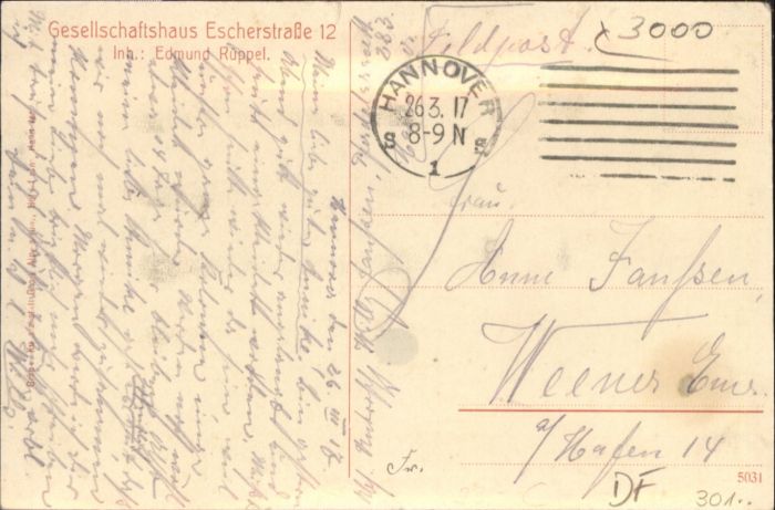 40862246 Hannover [Stempelabschlag] Gesellschaftshaus Escherstrasse KatCode 11110003241001