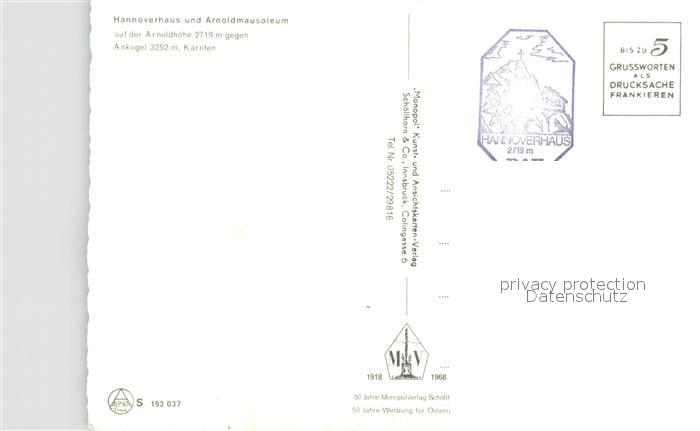 73521165 Hannoverhaus Arnoldmausoleum auf Arnoldhoehe gegen Ankogel postalisch nicht gelaufen Erhaltung siehe scans [FriedD77] KatCode: 11390212020618