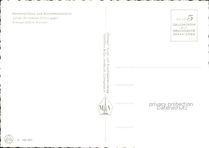 72050201 Hannoverhaus Berghaus mit Arnoldmausoleum Arnoldhoehe gegen Ankogel postalisch nicht gelaufen Erhaltung siehe scans KatCode: 11390212020618