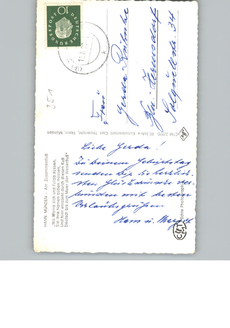 31131956 Hannoversch Muenden postalisch nicht gelaufen KatCode: 11110003152016