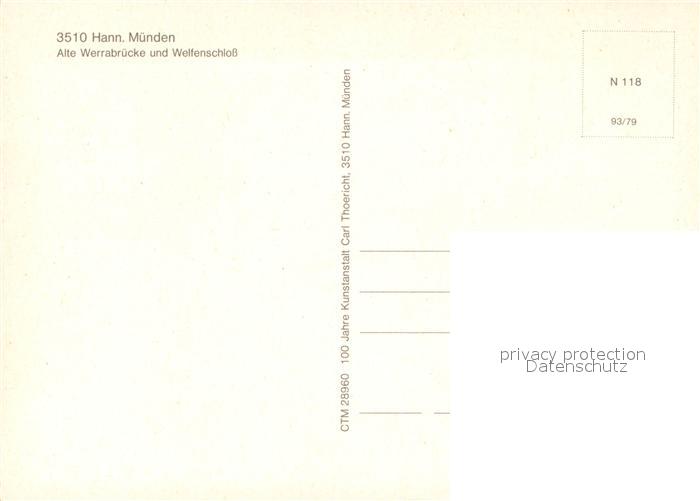73229828 Hannoversch Muenden Alte Werrabr?cke Welfenschloss postalisch nicht gelaufen Erhaltung siehe scans [KathaD81] KatCode: 11110003152016