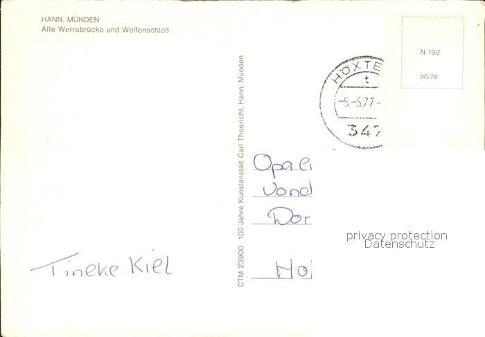 72232923 alte Postkarte Hannoversch Muenden Alte Werrabruecke mit Werraschloss postalisch gelaufen Erhaltung siehe scans KatCode: 11110003152016