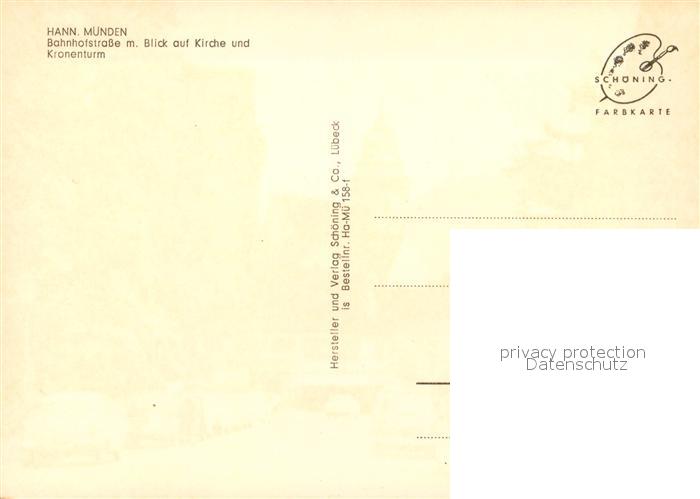 73229813 Hannoversch Muenden Bahnhofstra?e Kirche Kronenturm postalisch nicht gelaufen Erhaltung siehe scans [KathaD81] KatCode: 11110003152016