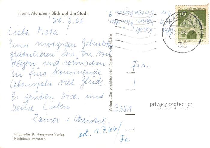 73029969 alte Postkarte Hannoversch Muenden Fliegeraufnahme postalisch gelaufen Erhaltung siehe scans [KathaD81] KatCode: 11110003152016