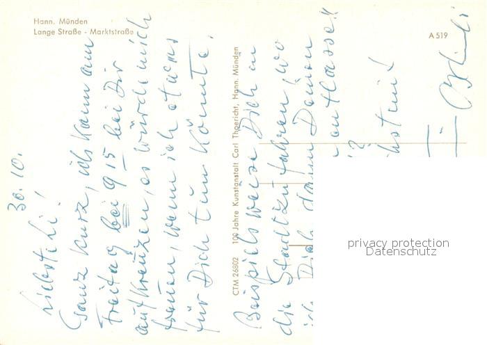 73229819 Hannoversch Muenden Lange Stra?e Marktstra?e postalisch nicht gelaufen Erhaltung siehe scans [KathaD81] KatCode: 11110003152016