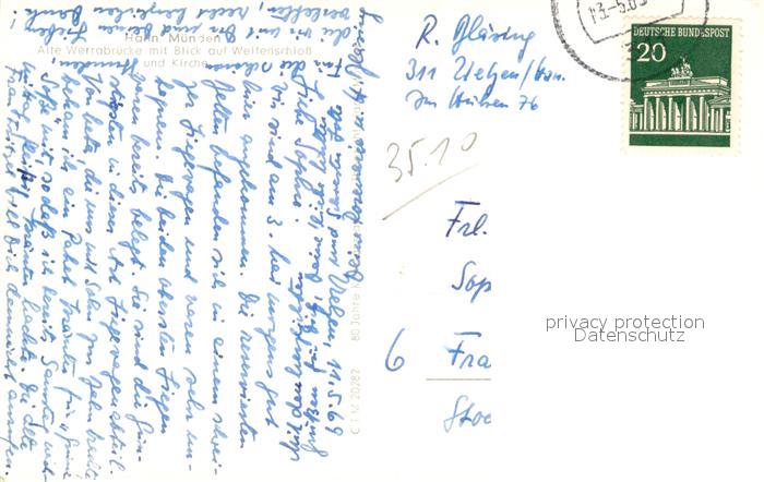 73603439 alte Postkarte Hannoversch Muenden Werrabruecke Weltenschloss postalisch gelaufen Erhaltung siehe scans [KathaD81] KatCode: 11110003152016