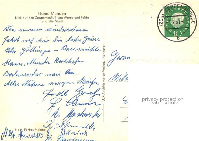 73129936 alte Postkarte Hannoversch Muenden Zusammenfluss Werra Fulda postalisch gelaufen Erhaltung siehe scans [KathaD81] KatCode: 11110003152016