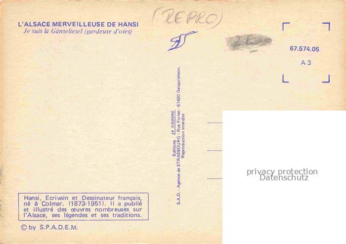 74022989 Hansi Waltz J J Kuenstlerkarte Alsace Elsass Alsace Gaenseliesel postalisch nicht gelaufen Reprokarte Erhaltung siehe scans [IrynaD87] KatCode: 22240000001800