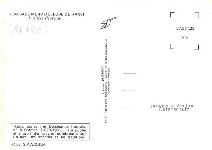 74022427 Hansi Waltz J J Kuenstlerkarte Alsace Elsass Alsace Heureuse H.Floury Editeur postalisch nicht gelaufen Reprokarte Erhaltung siehe scans [IrynaD87] KatCode: 22240000001800