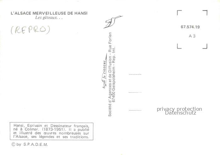 74022426 Hansi Waltz J J Kuenstlerkarte Alsace Elsass Alsace Les gateaux postalisch nicht gelaufen Reprokarte Erhaltung siehe scans [IrynaD87] KatCode: 22240000001800