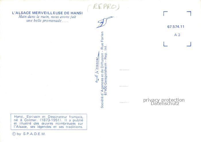 74021805 Hansi Waltz J J Kuenstlerkarte Alsace Elsass Alsace Main dans la main belle promenade postalisch nicht gelaufen Reprokarte Erhaltung siehe scans [IrynaD87] KatCode: 22240000001800