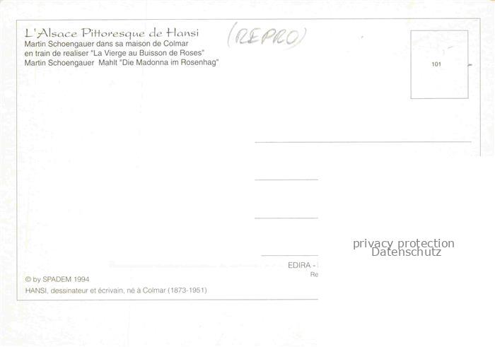 74023527 Hansi Waltz J J Kuenstlerkarte Alsace Elsass Alsace Martin Schoengauer maison Colmar postalisch nicht gelaufen Reprokarte Erhaltung siehe scans [IrynaD87] KatCode: 22240000001800