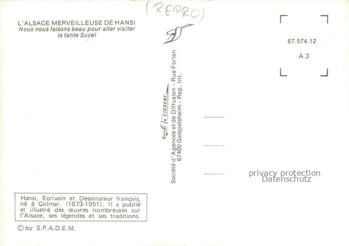 74021813 Hansi Waltz J J Kuenstlerkarte Alsace Elsass Alsace Nous faisons beau pour aller visiter tante Suzel postalisch nicht gelaufen Reprokarte Erhaltung siehe scans [IrynaD87] KatCode: 22240000001800