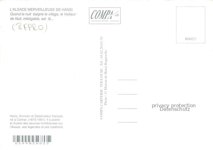74021327 Hansi Waltz J J Kuenstlerkarte Alsace Elsass Alsace Quand la nuit baigne le village Veilleur Nuit postalisch nicht gelaufen Reprokarte Erhaltung siehe scans [IrynaD87] KatCode: 22240000001800