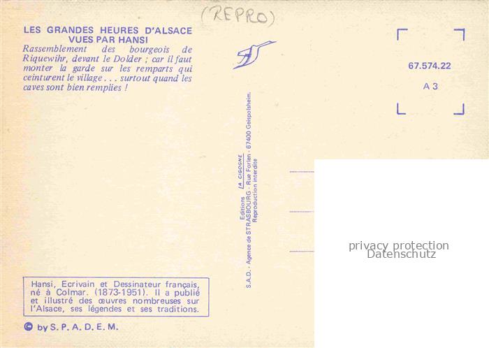 74022428 Hansi Waltz J J Kuenstlerkarte Alsace Elsass Alsace Rassemblement des bourgeois de Riquewihr postalisch nicht gelaufen Reprokarte Erhaltung siehe scans [IrynaD87] KatCode: 22240000001800