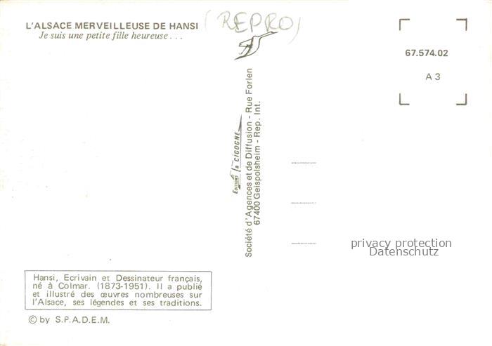 74021812 Hansi Waltz J J Kuenstlerkarte Alsace Elsass Alsace suis une petite fille heureuse postalisch nicht gelaufen Reprokarte Erhaltung siehe scans [IrynaD87] KatCode: 22240000001800