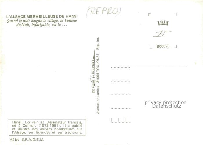 74021802 Hansi Waltz J J Kuenstlerkarte Alsace Elsass Alsase Quanda la nuir boigne le villageVeilleur Nuit postalisch nicht gelaufen Reprokarte Erhaltung siehe scans [IrynaD87] KatCode: 22240000001800