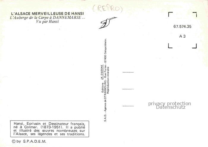74022430 Hansi Waltz J J Kuenstlerkarte Alsace Elsass Auberge de la Carpe Dannemarie postalisch nicht gelaufen Reprokarte Erhaltung siehe scans [IrynaD87] KatCode: 22240000001800