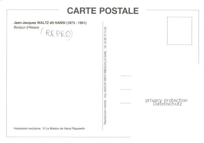 74022433 Hansi Waltz J J Kuenstlerkarte Alsace Elsass Bonjour Alsace postalisch nicht gelaufen Reprokarte Erhaltung siehe scans [IrynaD87] KatCode: 22240000001800