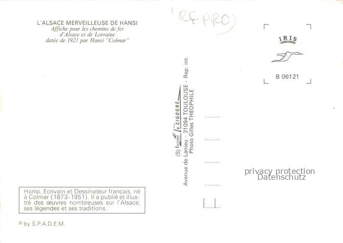74022980 Hansi Waltz J J Kuenstlerkarte Alsace Elsass Colmar Chemins de fer Alsace et de Lorraine postalisch nicht gelaufen Reprokarte Erhaltung siehe scans [IrynaD87] KatCode: 22240000001800