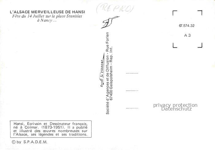 74023523 Hansi Waltz J J Kuenstlerkarte Alsace Elsass Fete du 14 Juillet Stanislas a Nancy postalisch nicht gelaufen Reprokarte Erhaltung siehe scans [IrynaD87] KatCode: 22240000001800
