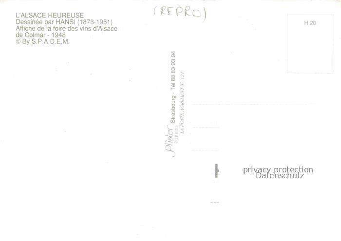 74022219 Hansi Waltz J J Kuenstlerkarte Alsace Elsass Foire Regionale des Vins Alsace Colmar postalisch nicht gelaufen Reprokarte Erhaltung siehe scans [IrynaD87] KatCode: 22240000001800