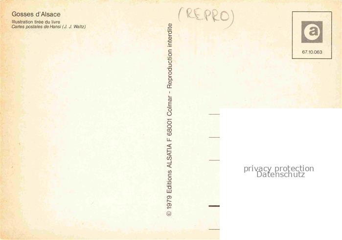 74022977 Hansi Waltz J J Kuenstlerkarte Alsace Elsass Grosses Alsace postalisch nicht gelaufen Reprokarte Erhaltung siehe scans [IrynaD87] KatCode: 22240000001800