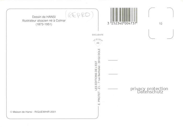 74023584 Hansi Waltz J J Kuenstlerkarte Alsace Elsass Illustrateur Alsace Colmar postalisch nicht gelaufen Reprokarte Erhaltung siehe scans [IrynaD87] KatCode: 22240000001800