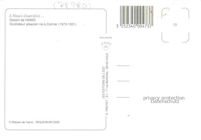 74022440 Hansi Waltz J J Kuenstlerkarte Alsace Elsass Illustrateur alsacie Colmar postalisch nicht gelaufen Reprokarte Erhaltung siehe scans [IrynaD87] KatCode: 22240000001800