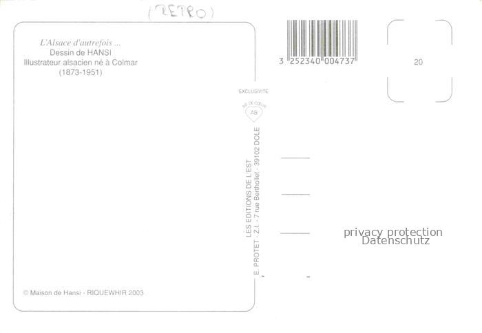 74022438 Hansi Waltz J J Kuenstlerkarte Alsace Elsass Illustrateur alsacie Colmar postalisch nicht gelaufen Reprokarte Erhaltung siehe scans [IrynaD87] KatCode: 22240000001800